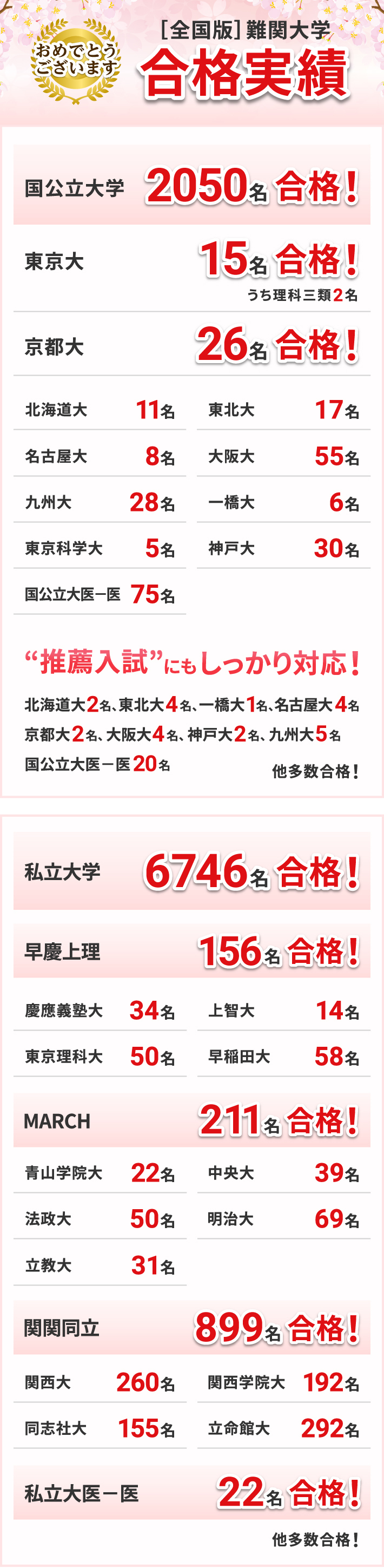 - 中学・高校の実績は(内部進学がある学校の場合)内部進学者は含みません。