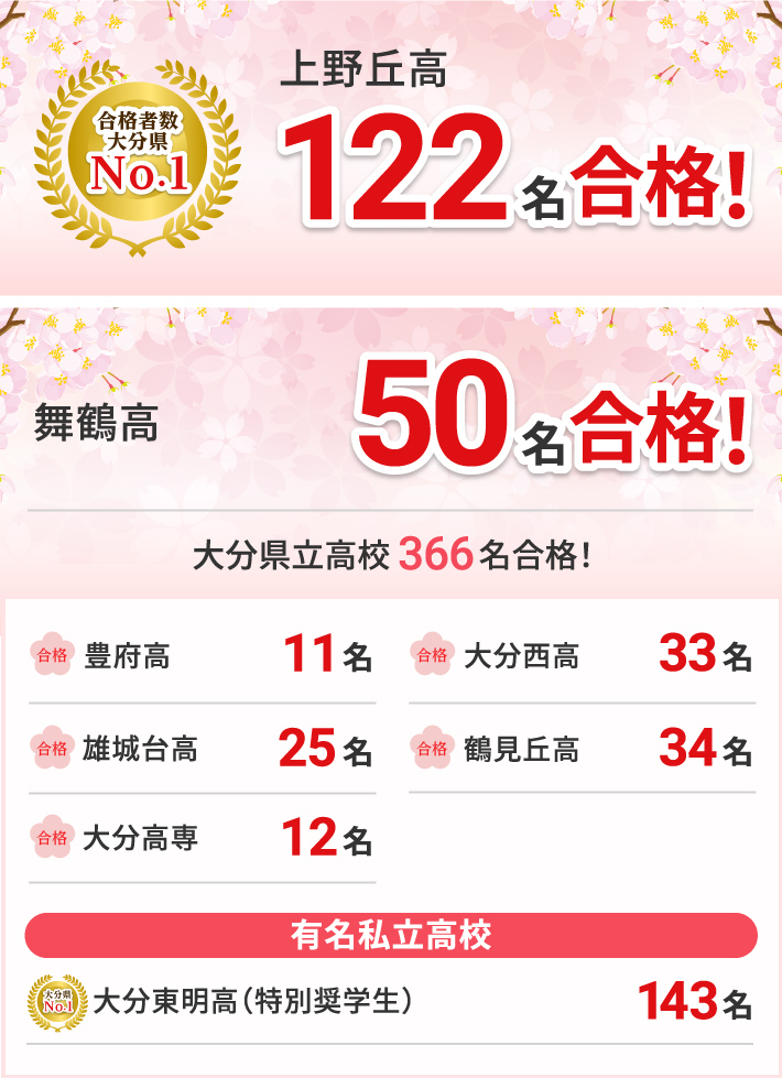 - ※合格実績は大分県の正会員のみの数値です。テスト・講習のみの参加者は一切含みません。